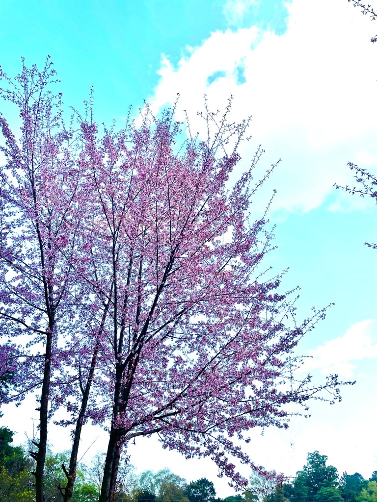 Cherry trees stand happy