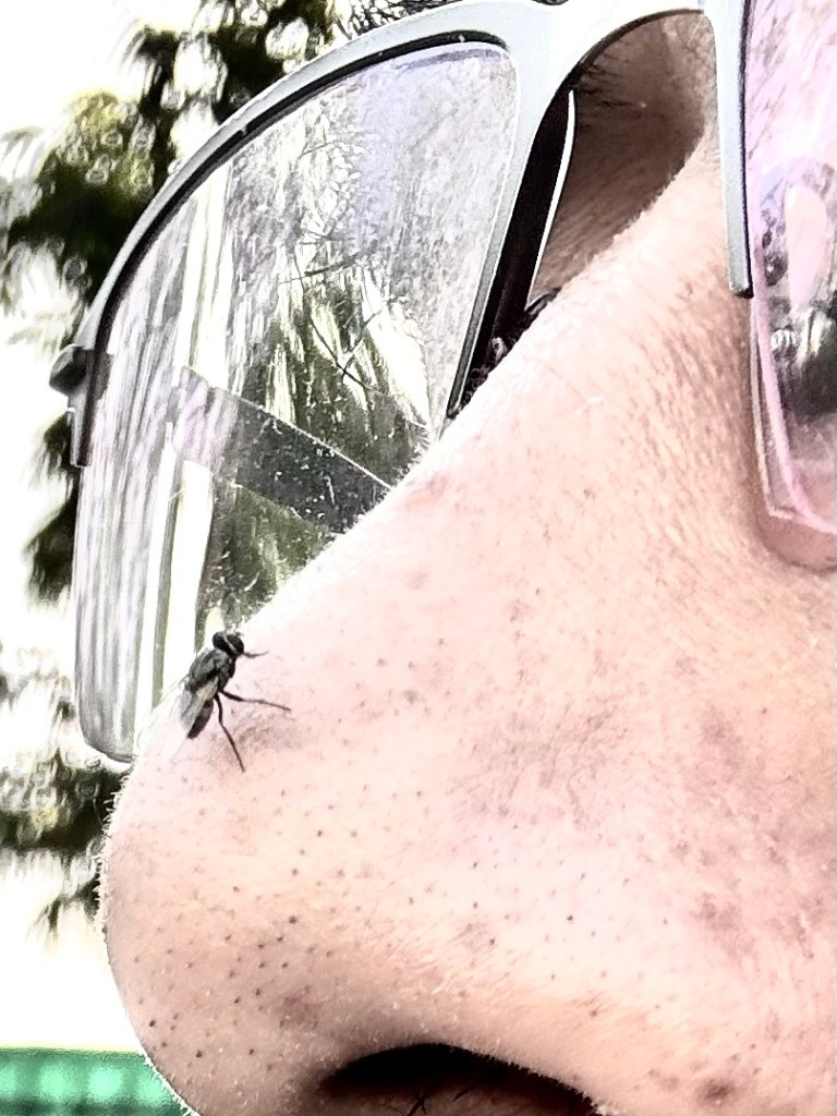 It’s now Humming in the ear Gloating in an ingratiating way I am just a fly You are the mighty human Yet I am on your nose At my own will and Unassailable