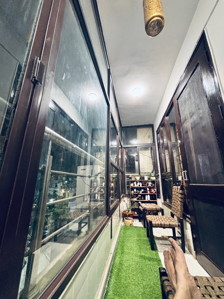 The balcony was amply and a tad bit overly lit. It would have been perfect, but the mood and theme was not resonating with the abundant lux that the white LeD lights were exuding.