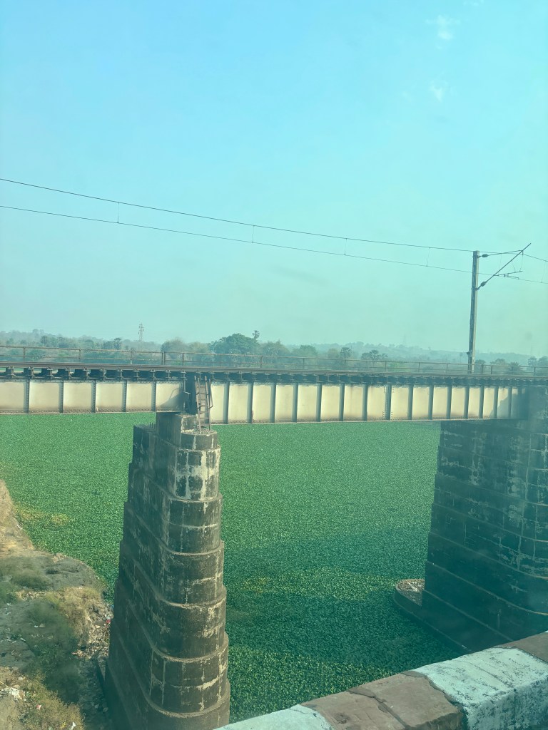 We passed through short tunnels furrowing through the broken landscape of Deccan plateau. Slowly creeping, as we reached the end of our journey. We were late now. We were being stopped and waylaid to allow other trains which were on time. It wasn’t that it was always late. On the contrary our co-passengers talked of punctuality of this train. Maybe it was this time that it was delayed. Maybe we were not in a rush and it had just obliged us with some slow life. We even stopped on the bridge over some obscure weed ridden Kalu river. A picture perfect stop if you are not hassled by the delay. Few were heard cribbing on the train.